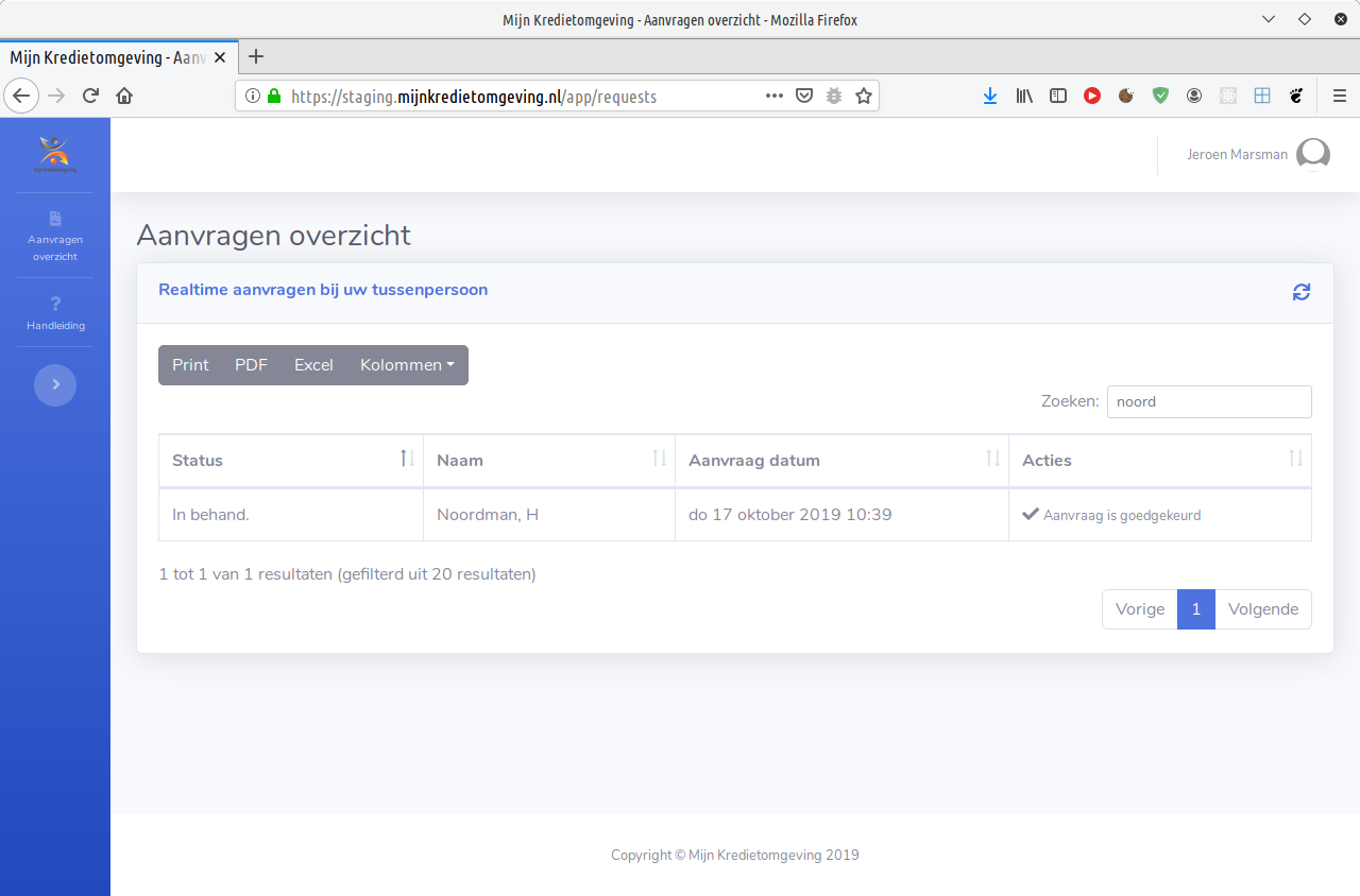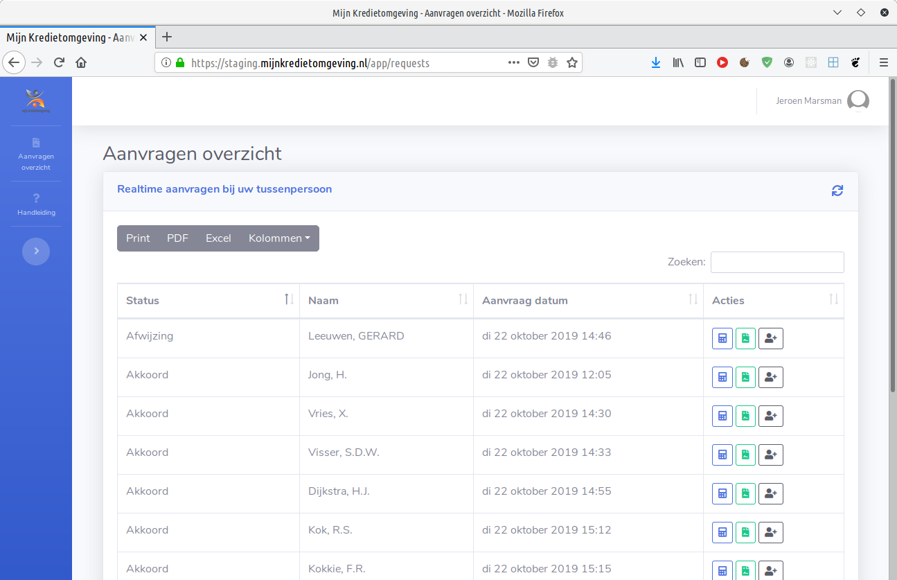 Op dit moment wordt de API gebruikt door de Mijn Kredietomgeving Portaal. Vanaf versie 2.0 zal deze ook beschikbaar komen voor tussenpersonen.