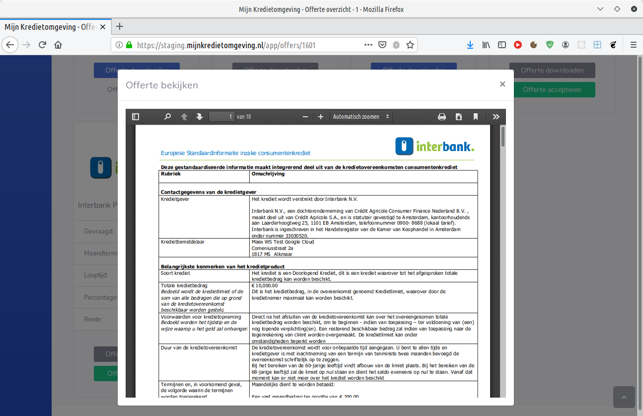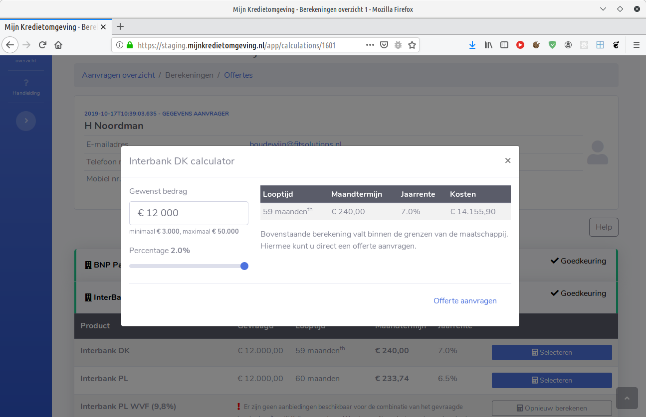 Binnen Mijn Kredietomgeving zijn dit de aanbiedingen waaruit de subagent kan kiezen en een berekening op kan uitvoeren.